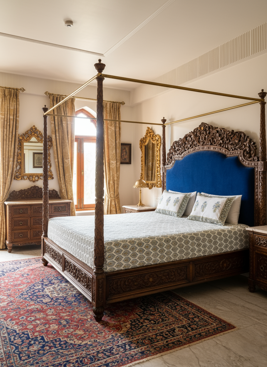 Bring timeless elegance to your bedroom with this handcrafted heritage block print bedsheet set, inspired by the grandeur of Indian palaces. Made from premium-quality cotton, the set includes one generously sized bedsheet and two matching pillowcases.