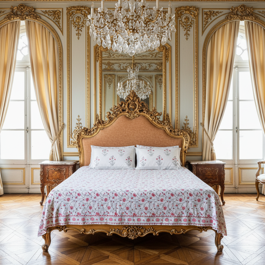 Bring timeless elegance to your bedroom with this handcrafted heritage block print bedsheet set, inspired by the grandeur of Indian palaces. Made from premium-quality cotton, the set includes one generously sized bedsheet and two matching pillowcases.