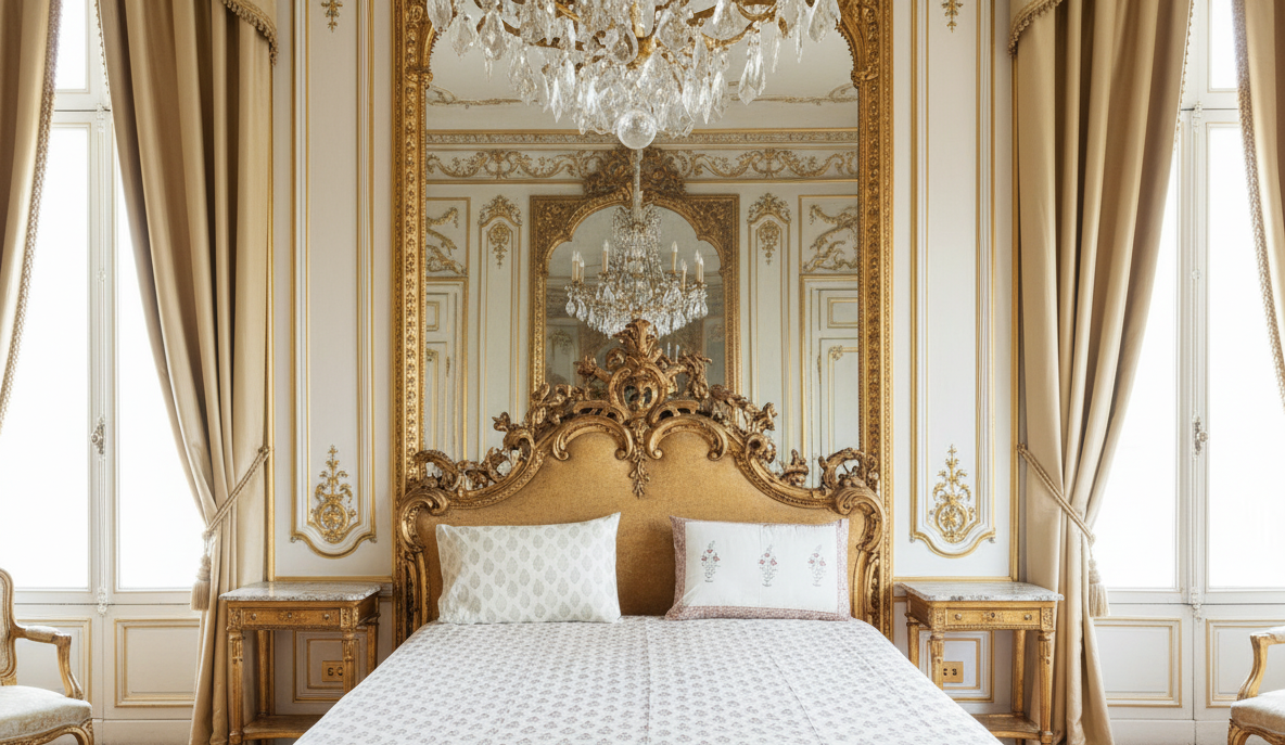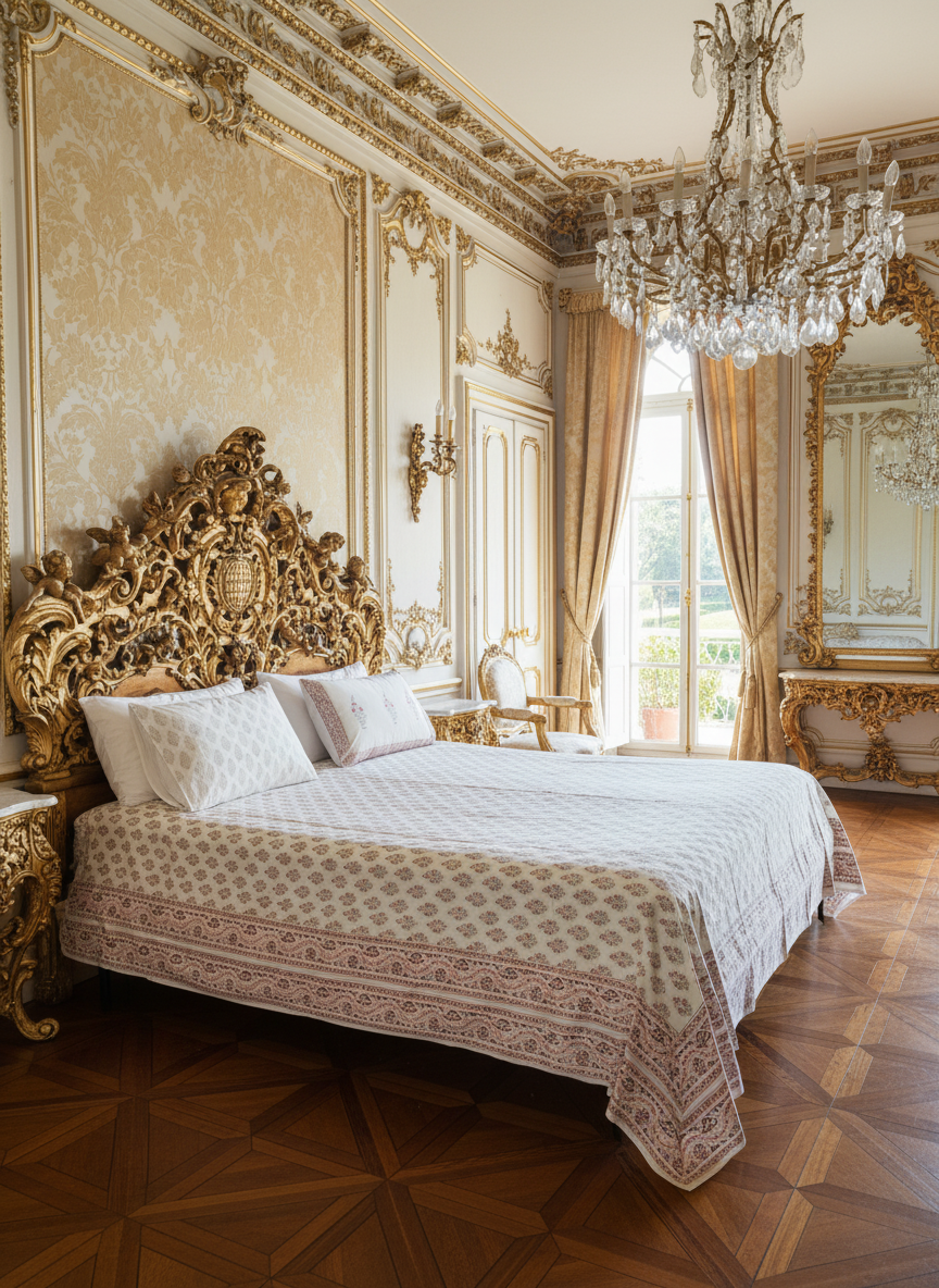 Bring timeless elegance to your bedroom with this handcrafted heritage block print bedsheet set, inspired by the grandeur of Indian palaces. Made from premium-quality cotton, the set includes one generously sized bedsheet and two matching pillowcases.
