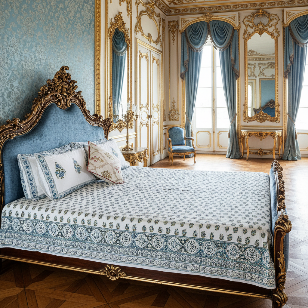 Bring timeless elegance to your bedroom with this handcrafted heritage block print bedsheet set, inspired by the grandeur of Indian palaces. Made from premium-quality cotton, the set includes one generously sized bedsheet and two matching pillowcases.