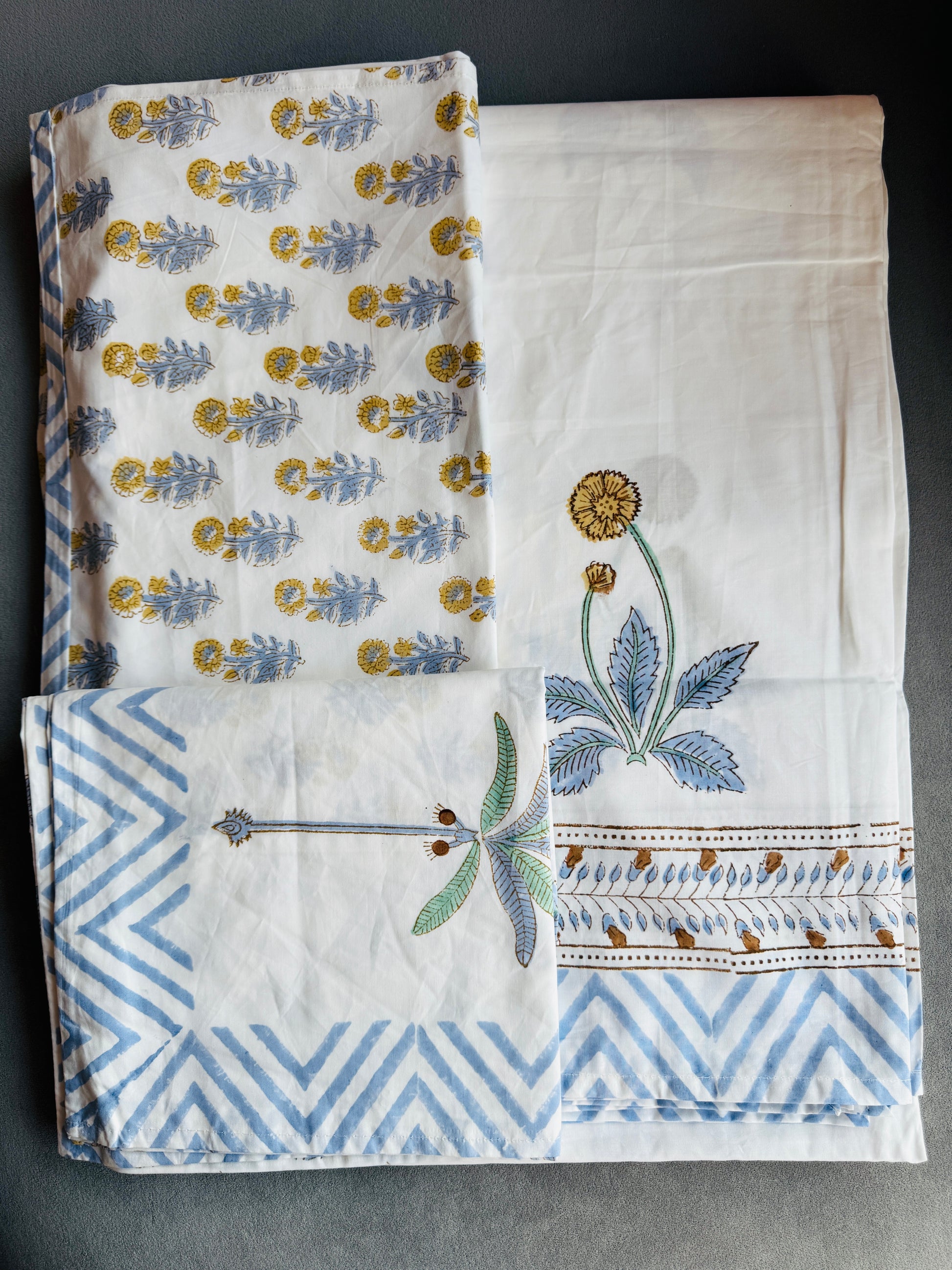 Santorini Block Print 100% Cotton Percale Bedsheet with 2 Pillowcases